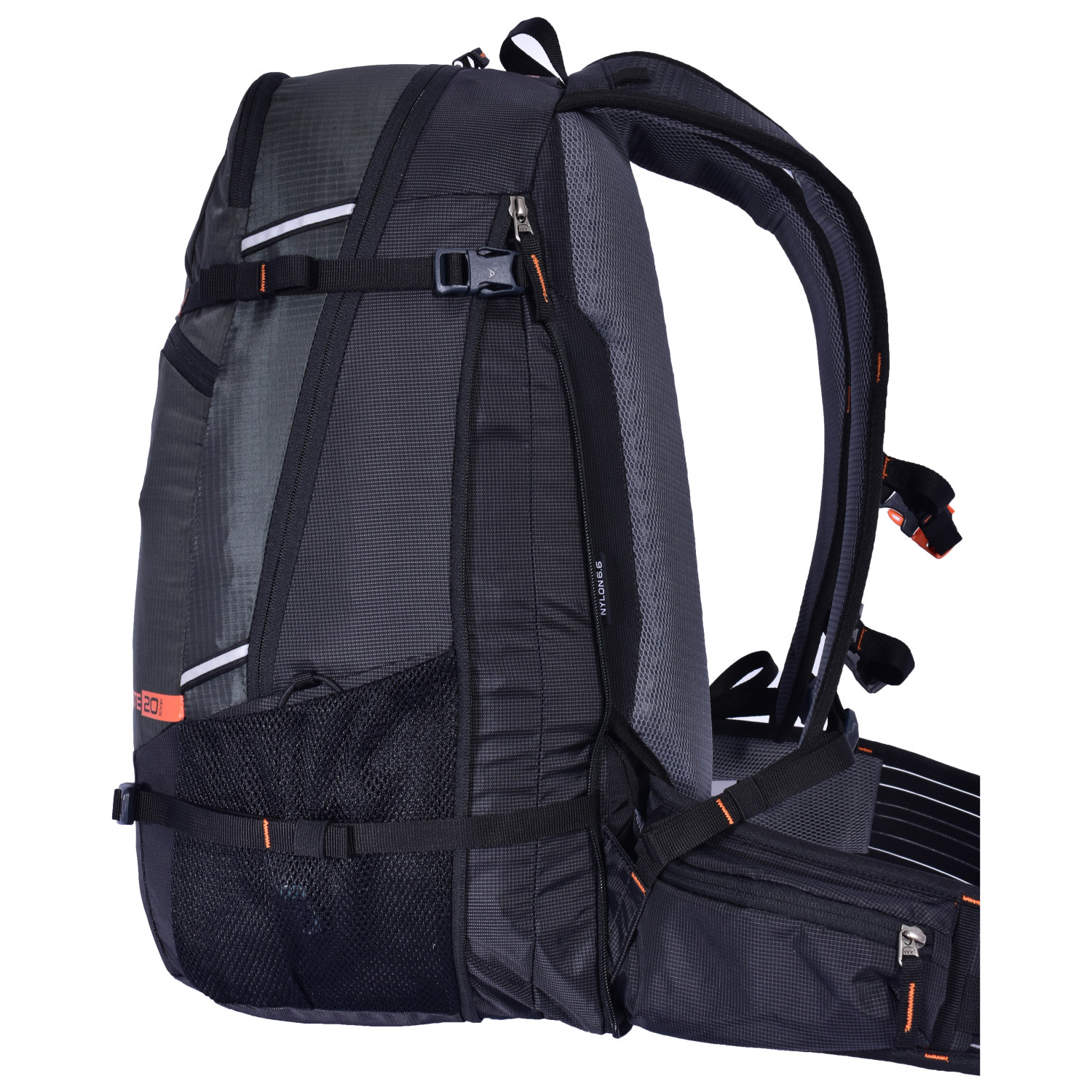 - 2 Hüftgurttaschen, Brillenfach, Helmhalterung, internes Organizer-Fach, Rücklicht-Halterung