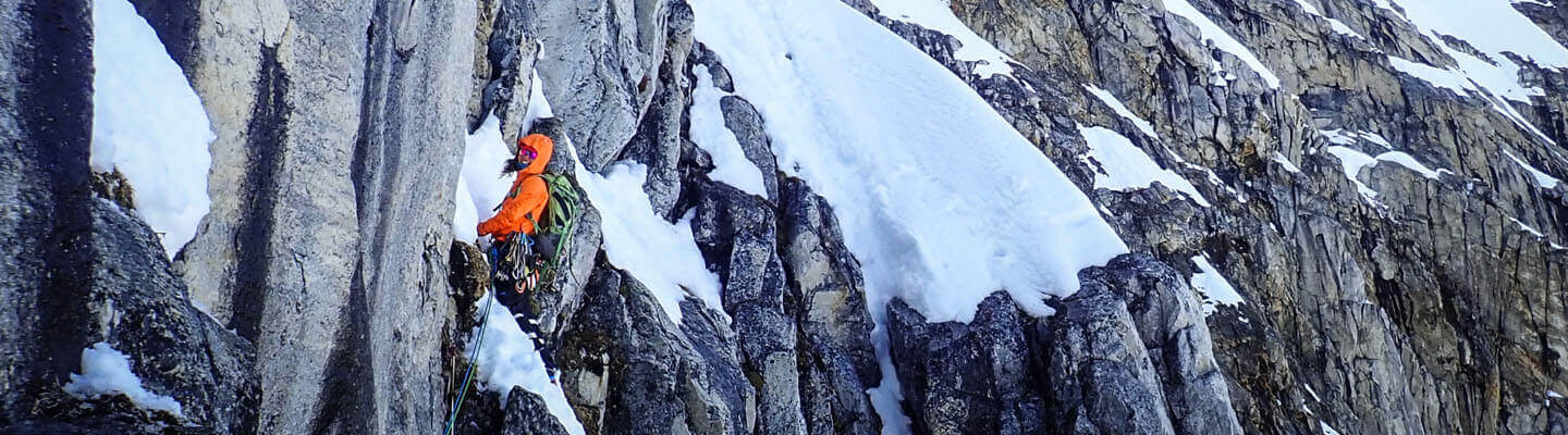 Als nächste Tour wählten wir die Nordostseite des südlichen Dukes (sie ist 10b, M5+, 85°, 500m). Am nächsten Tag befuhren wir einige Gipfel mit Ski, bevor wir dann, wegen schlechtem Wetter, einen Ruhetag im Zelt einlegten. Anschließend machten wir uns auf den Weg zum Devils Paw, wo wir das Süd-Ost Couloir mit Ski befahren wollten. Doch die Distanzen hier sind enorm und so bedeutete die Route für uns, dass wir über 20 Meilen hin- und das ganze wieder zurück laufen mussten.