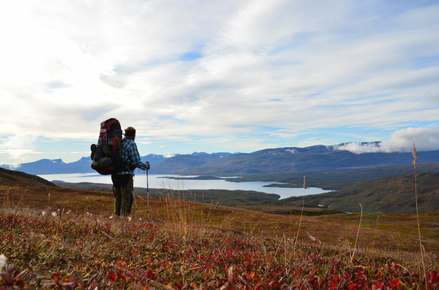 2013 stand ich am Nordkap, dem Sehnsuchtsziel vieler Leute. Aber nicht mit dem Wohnmobil oder dem Postschiff, sondern zu Fuß und allein war ich dort hingewandert! Meine Wanderung begann Ende Mai am Kap Lindesnes, Norwegens südlichstem Punkt, das Straßenschild zum Nordkap wies 2518 km bis zum Ziel aus. Einmal durch ganz Norwegen, eine Wanderung, die die Norweger Norge på langs nennen, was so viel wie Norwegen der Länge nach heißt. Die verschiedensten Regionen und Menschen begegneten mir auf meiner Tour. Und auch der Wechsel zwischen drei der vier Jahreszeiten machte diese Wanderung zu etwas ganz Besonderem. Das Frühjahr zeigte sich, der Schnee schmolz und das Leben im Fjell und an den unzähligen Seen und Bächen erwachte aus dem Winterschlaf. Der Sommer war heiß und eine ganze Armee Moskitos machte mir die Wanderung ein ums andere Mal schwer. Dann kam der unfassbare Herbst, die tollste Zeit auf meiner Wanderung. Das Fjell verfärbt sich in faszinierende Rot und Gelbtöne, die Luft wird kalt und klar, ich bekam tanzende Polarlichter direkt über meinem Zelt zu sehen.