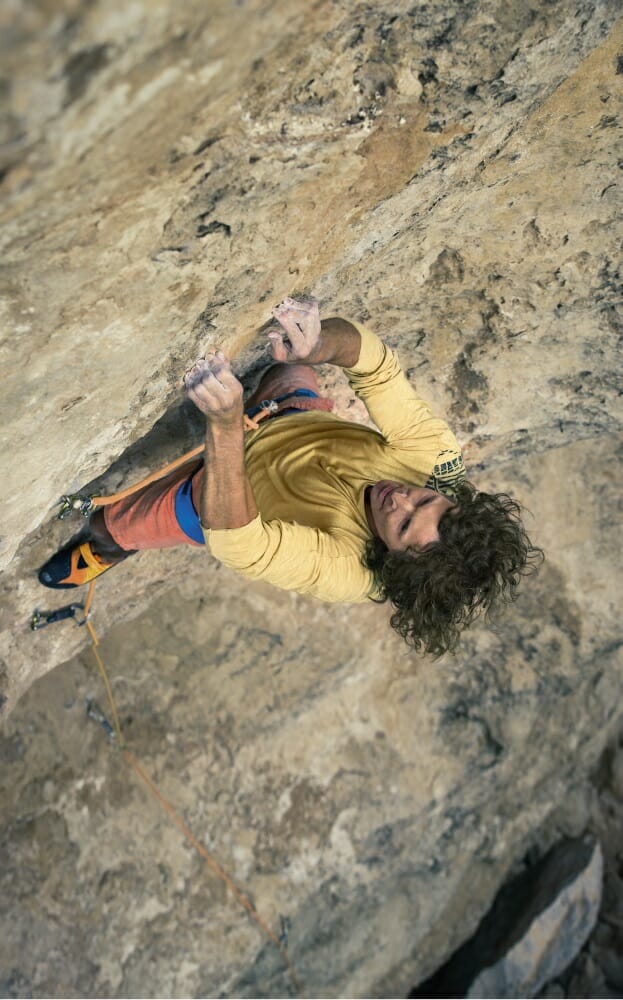 Doch fangen wir der Reihe nach an. Zunächst kam der Amp von Red Chili in der heimischen Kletterhalle zum Einsatz. Ein Slipper also: zweigeteilte Vibram-Sohle, asymmetrische Passform, Synthetik-Schaft aus Mikrofaser-Material sowie ein Leder-Fußbett mit weicher Zwischensohle. Das verspricht doch an sich, ein wunderbar bequemes Klettervergnügen zu werden. Noch dazu wenig Vorspannung, kaum Downturn – und schon hat man einen super Allround-Schuh, den man auch mal längere Zeit am Stück tragen kann, ohne dass einem die Füße schmerzen.