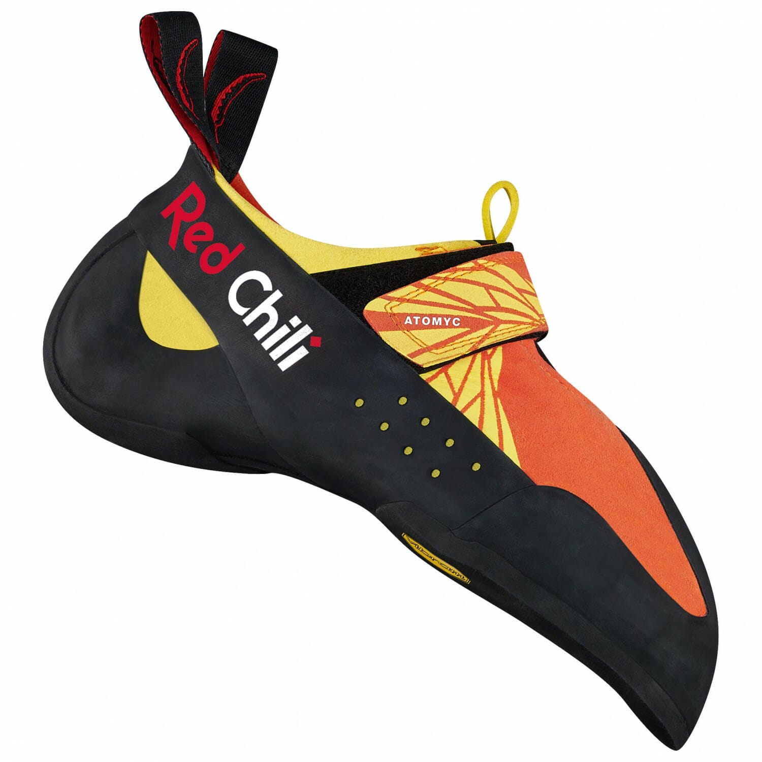 Nach etwa einer Stunde munter fröhlichen Vorsteigens ging es schließlich weiter in den Boulderbereich der besagten Halle. Hier wartete ein großes Dach darauf, nun auch den Atomyc von Red Chili begrüßen zu dürfen. Ebenfalls im Slipper-Design, kommt zusätzlich ein Klettverschluss-Band zum Einsatz und fixiert den Schuh regelrecht am Fuß. Gleichwohl mit einer zweigeteilten Vibram-Sohle ausgestattet, ist hier eine vorgespannte Mittelsohle verbaut, die präzises Antreten und stabilen Halt verspricht. Die Passform an sich ist leicht asymmetrisch und verfügt über einen starken Downturn – wahrlich eine High-End Waffe für harte Bouldersessions und fortgeschrittenen Wettkampfbetrieb.