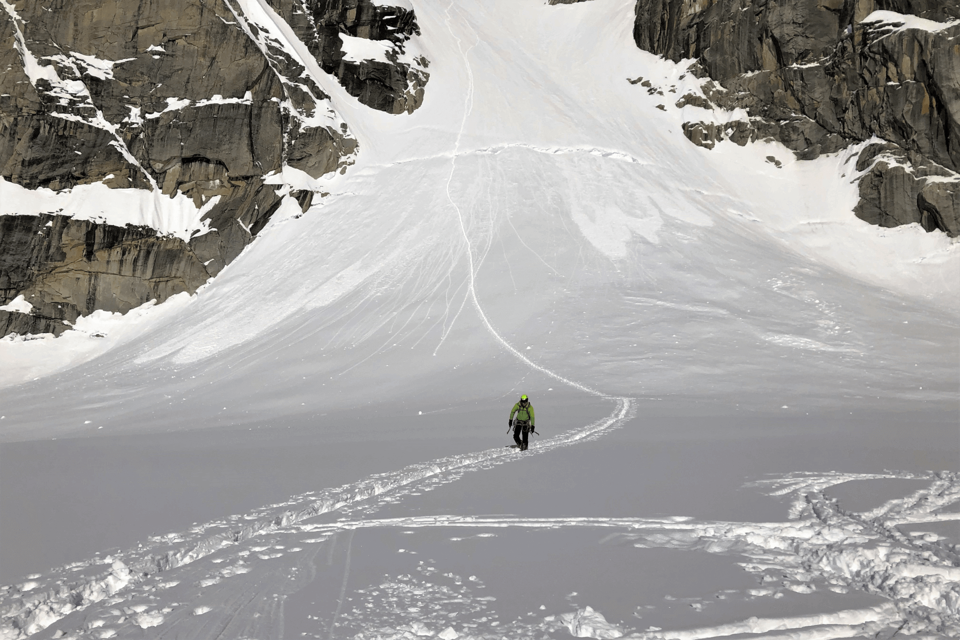 Ruth Gorge im Denali Nationalpark, April 2019. Über unser Satelliten-Kommunikationssystem haben wir die traurige Nachricht erhalten, dass David Lama, Hansjörg Auer und Jess Roskelley nach einem Lawinenabgang in den kanadischen Rocky Mountains vermisst werden. Die Gedanken drehen sich mehr und mehr um das Thema Lawinen. Mein Interesse, hier in einer Lawine zu verunglücken, ist nicht allzu groß, aber – eh klar – die Berge interessiert das keine Spur.