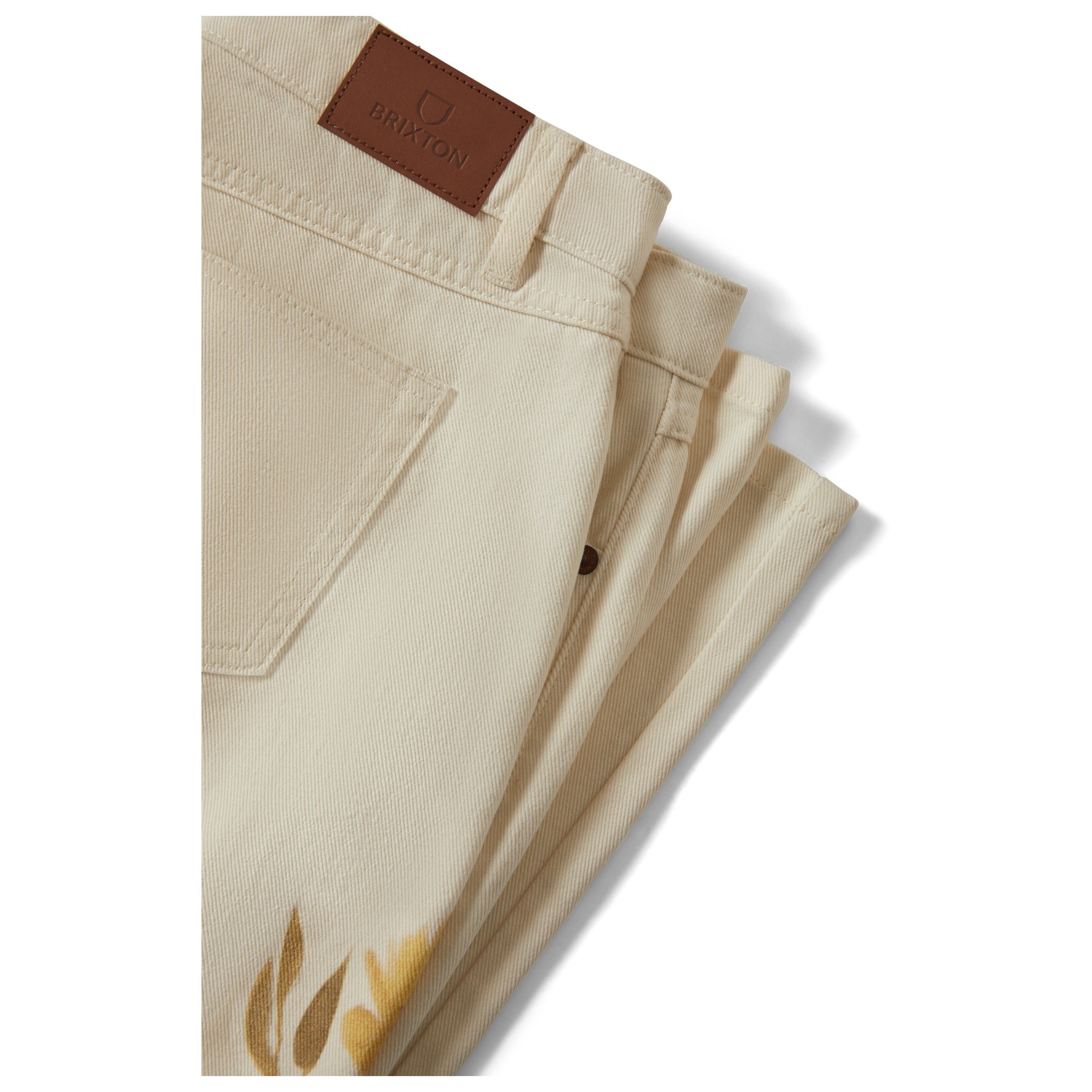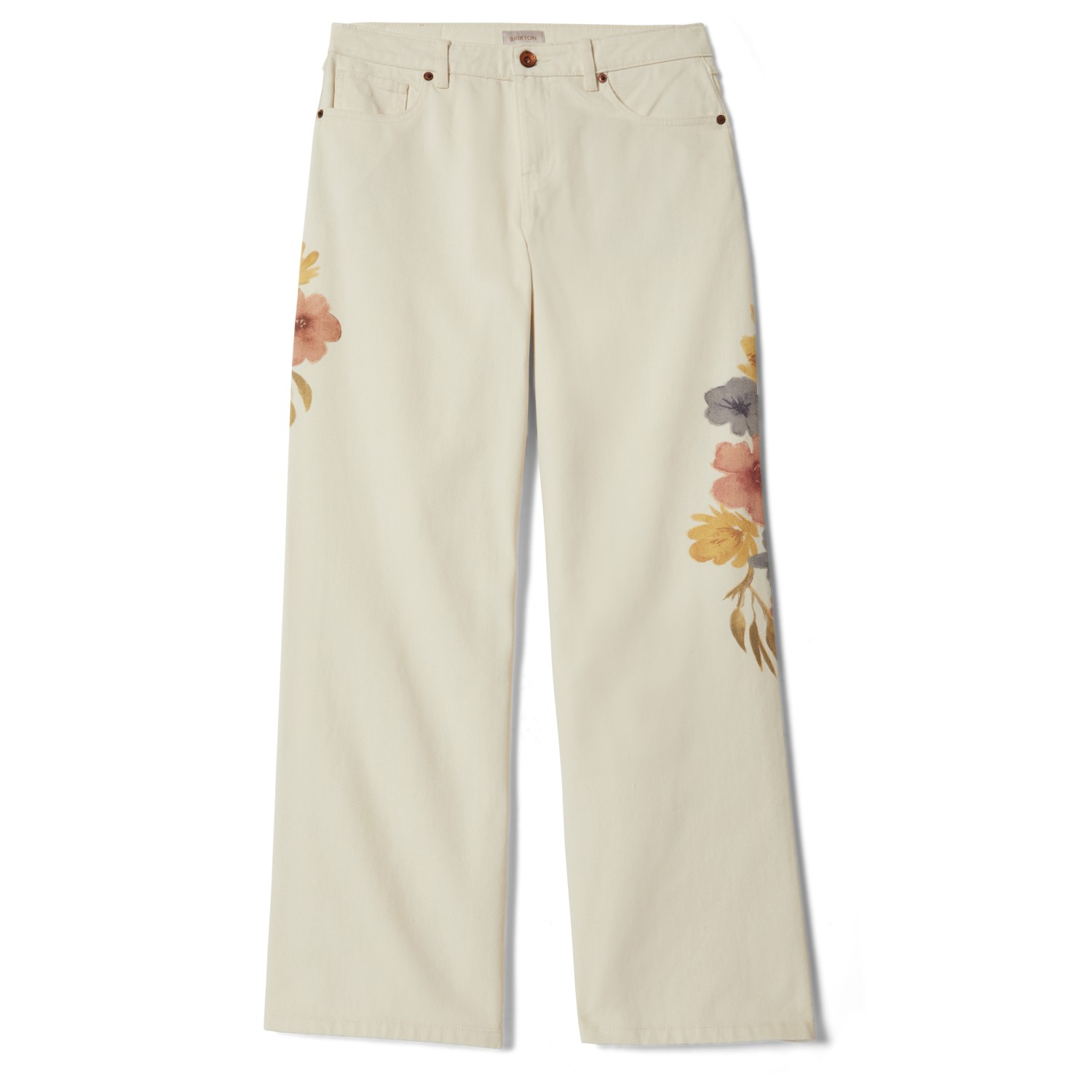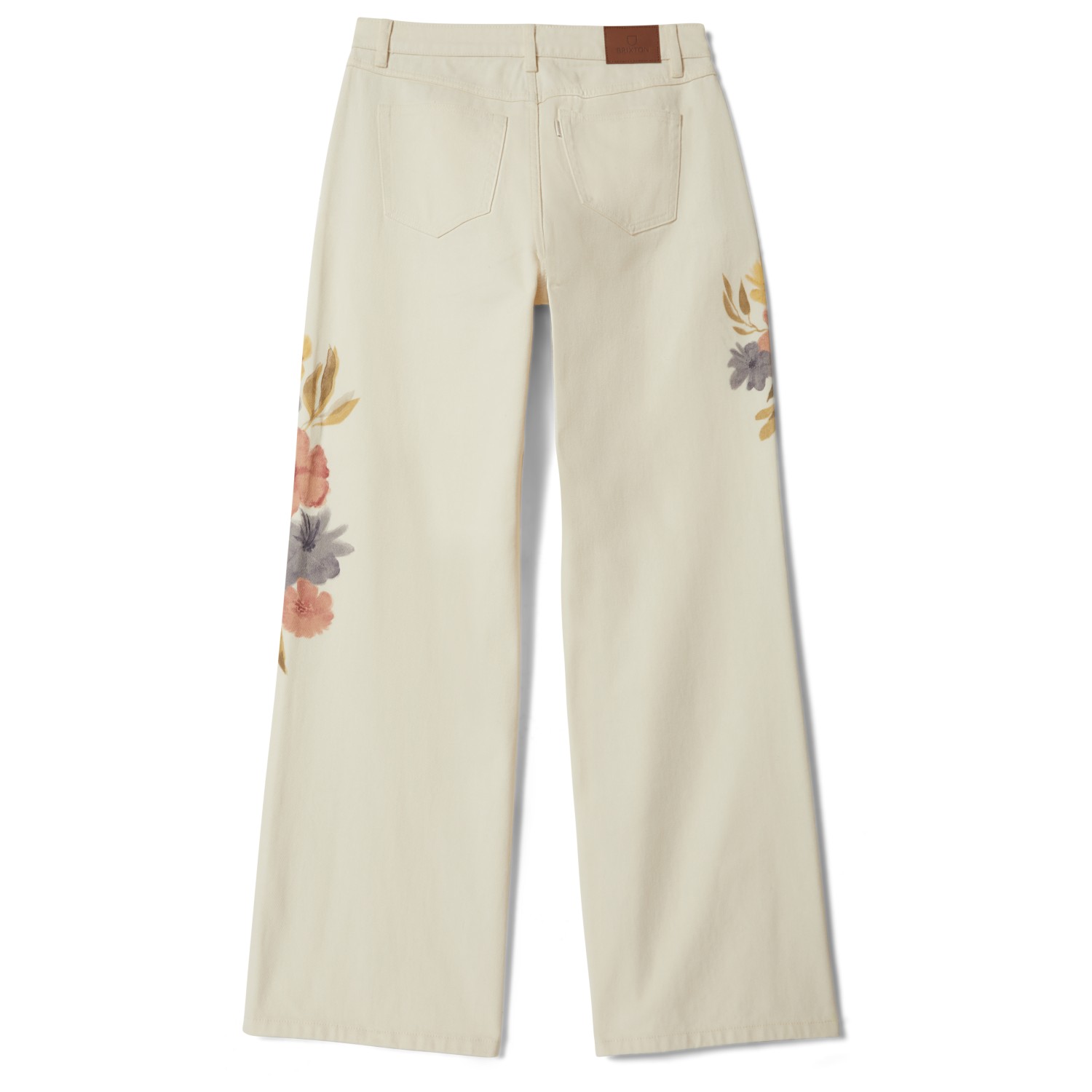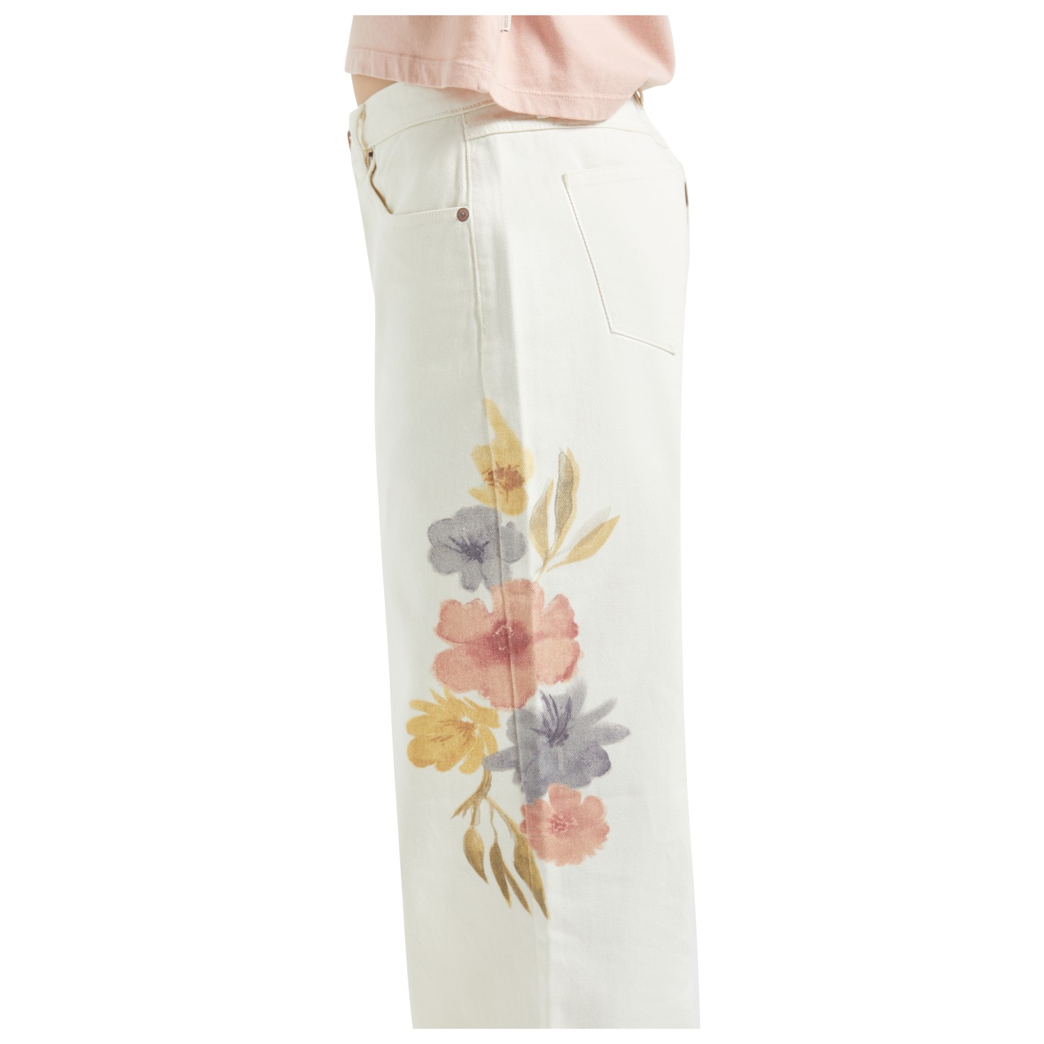 - weit geschnittenes Bein; Stickereien auf den Gesäßtaschen; Blumenprint auf den Beinen