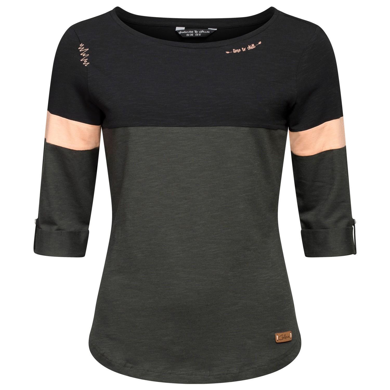 Ich kaufe immer wieder Chillaz -ich habe wohl das T-Shirt in Schwarz gekauft. Der Schnitt ist immer sehr gut und passt sowohl für den Alltag als für leichte Sportaktivitäten und sogar zur Arbeit.