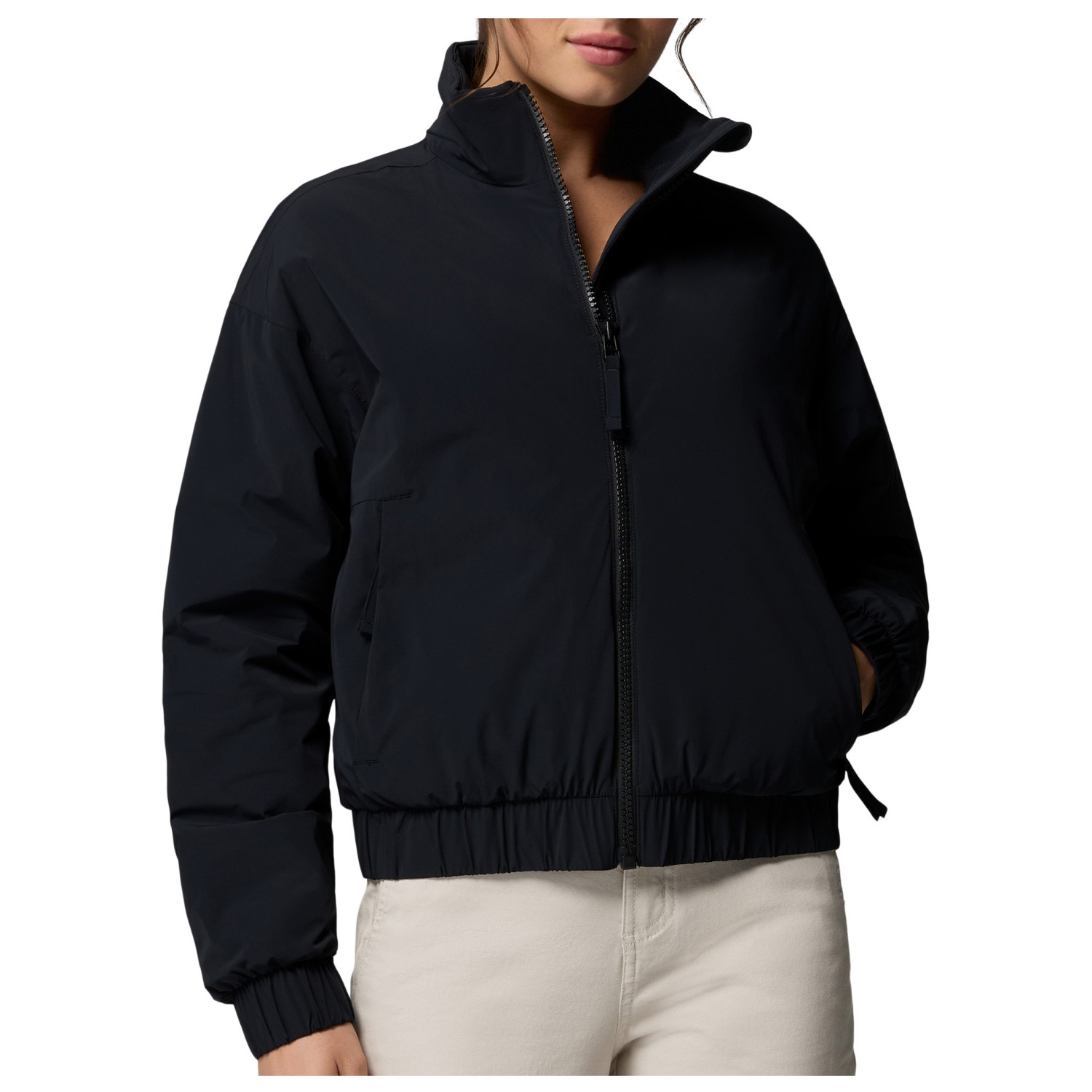 - elastische Ärmelbündchen, elastischer Hüftbund, Logoprint, Stehkragen