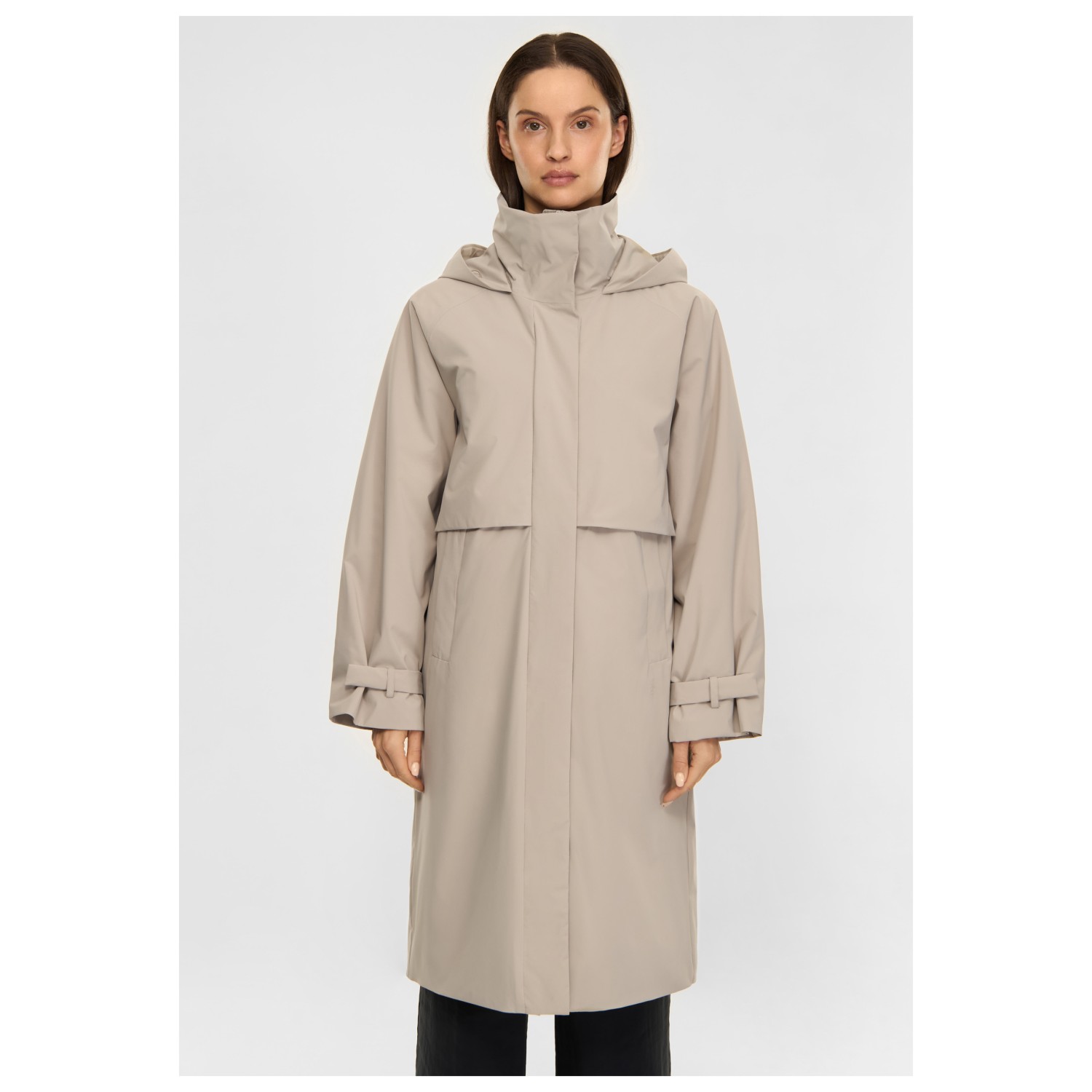 - Kordelzug an der Taille, Schlitz am hinteren Saum, verstellbare Ärmelbündchen