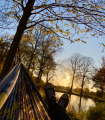 Die Dinger sind praktisch robust, leicht zu montieren und demontieren. So kann man zu zweit zwischen zwei Bäumen baumeln.