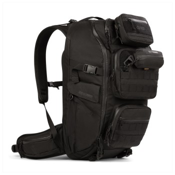 - Brillenfach, 2 Hüftgurttaschen, Laptopfach (17"), MOLLE-System, 2 Flaschenhalterungen