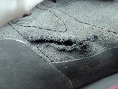 Und jetzt das große ABER: Nach nur zwei Monaten (kein Dauereinsatz! Lediglich einmal 5 Tage wandern und Kletterzustiege sowie jeweils ein Kletter- und Wanderwochenende, also echt wenig Einsatz) ist bei einem Schuh das Obermaterial an der Stelle, wo es beim Abrollen des Fußes knickt, eingerissen. Das ist schwach.