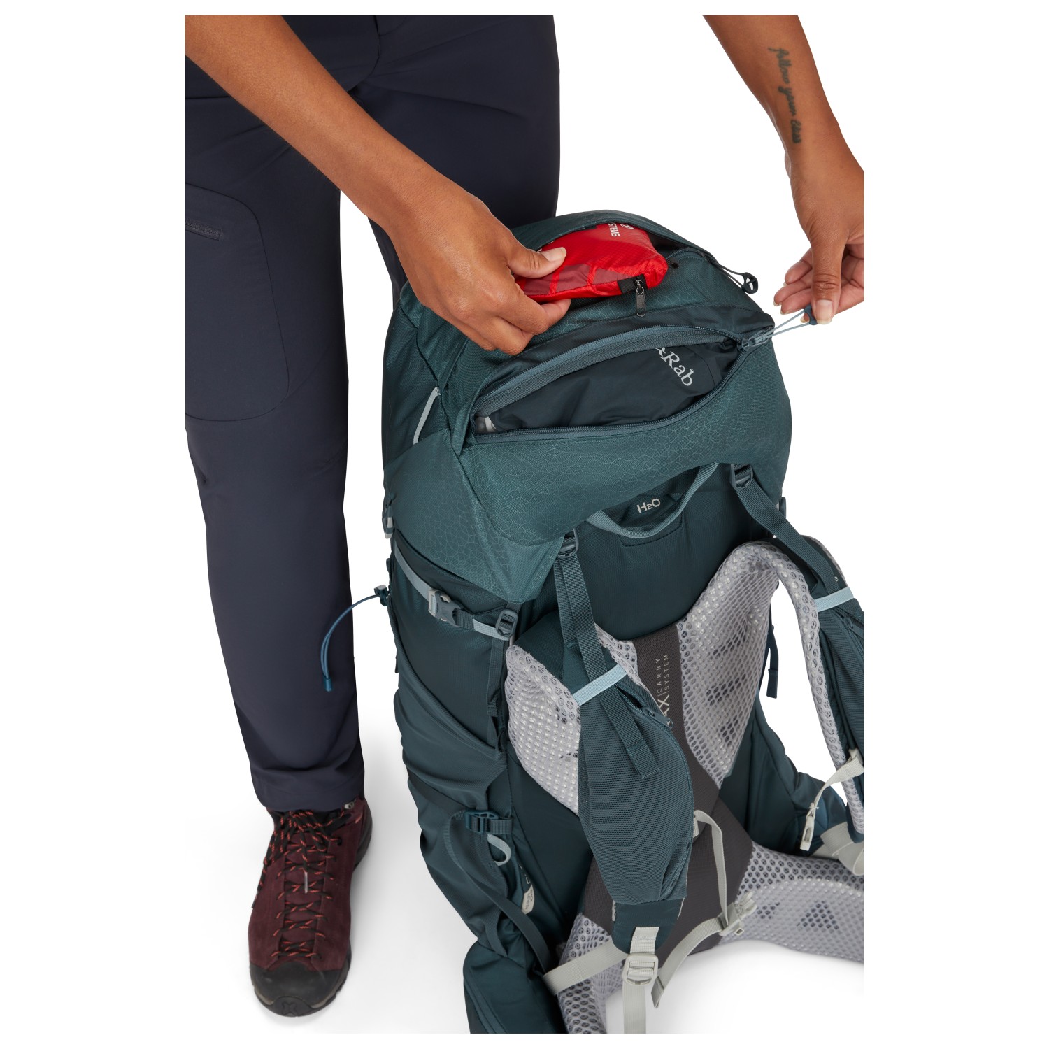 - Aluminiumrahmen, gepolsterte Schulterträger, gepolsterter Hüftgurt, gepolsterter Rücken, verstellbare Rückenlänge