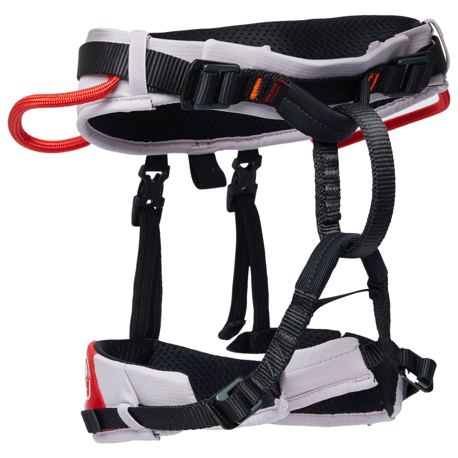 - 2 starre Schlaufen vorne, eine Chalkbagschlaufe, eine einzelne Schlaufe, eine Nachziehschlaufe