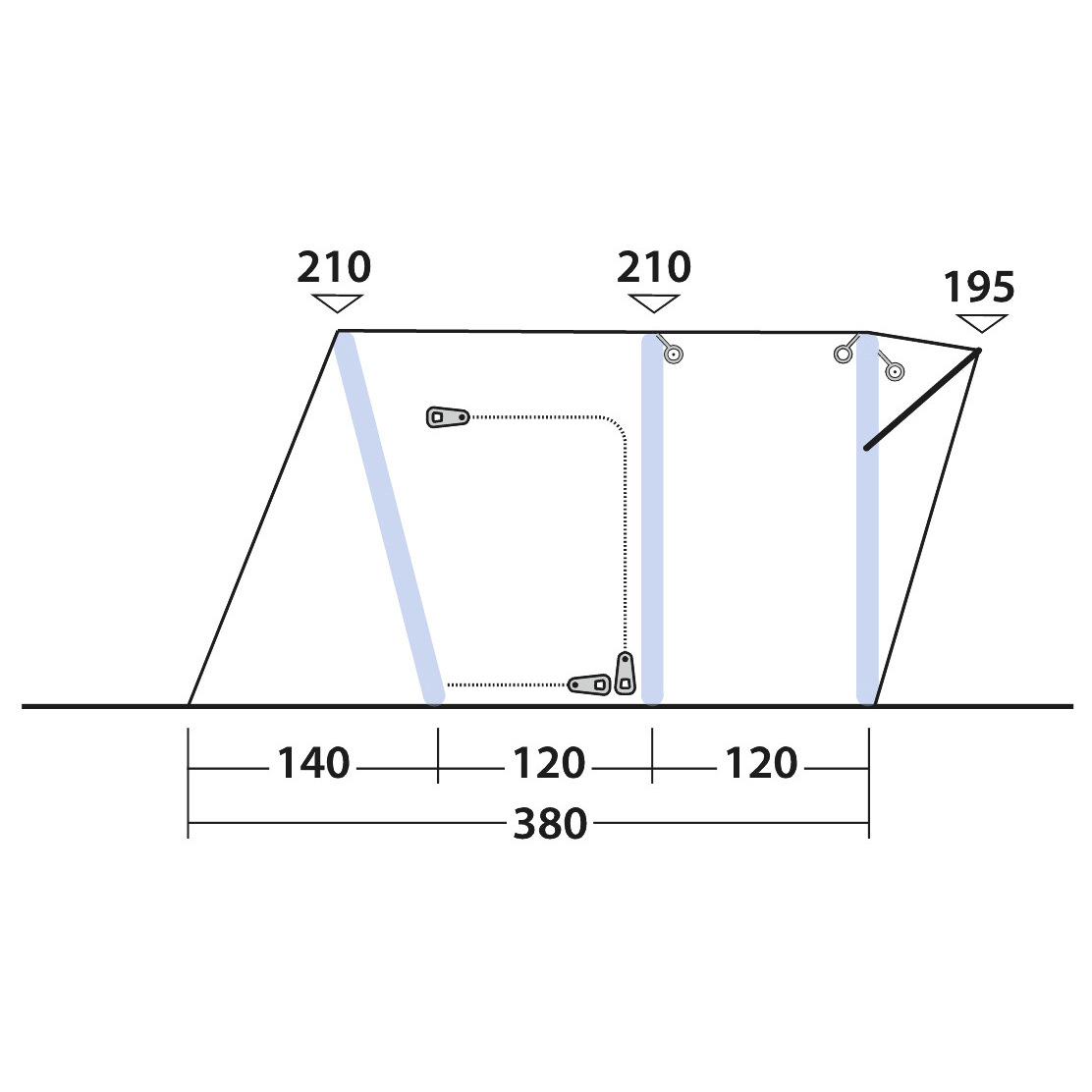 Das Wolfburg 380 Air (Modelljahr 2024) ist für das patentierte Outwell Nightlight System (ONS) vorbereitet. Es verfügt über integrierte Kanäle, Kabeldurchführungen und Befestigungspunkte, um das optionale ONS-Leuchtelement-Set anzuschließen. Das Beleuchtungspaket selbst ist nicht im Lieferumfang enthalten.
