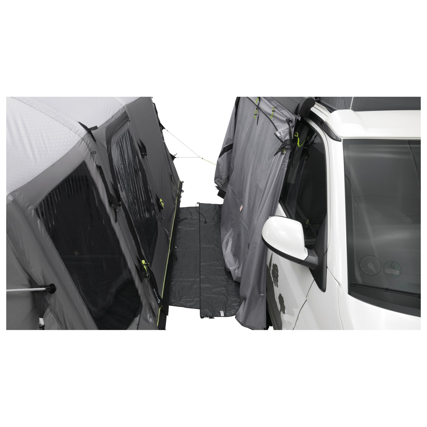das ist gar kein Problem. Die Schleuse kann auch über das Fahrzeug gespannt werden. Um die Kederschiene zu ersetzen gibt es bei Outwell selbst einen Verbindungssatz zu kaufen, welcher magnetisch am Van haftet.