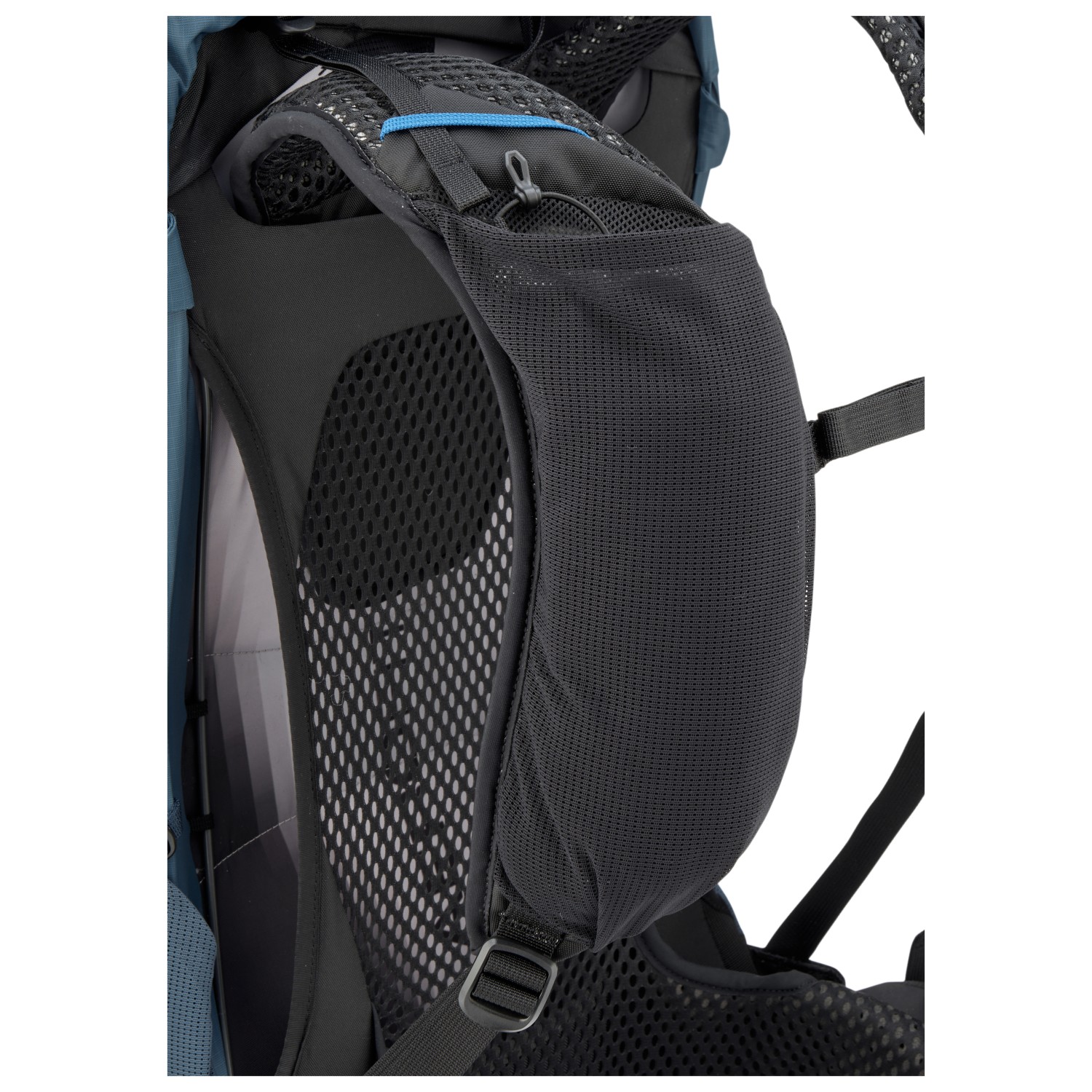 - 2 Flaschenhalterungen, 2 Hüftgurttaschen, Befestigung für Trekkingstöcke, Deckelfach, Gummizughalterung, RV-Fronttasche, Stretchfach
