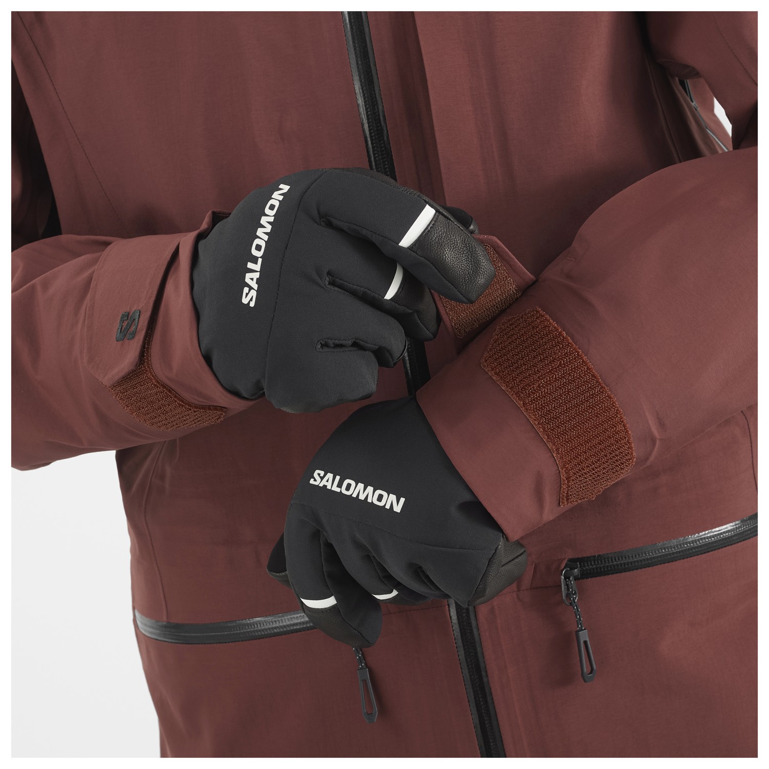 - integriertes Brillenputztuch, Klettverschlüsse an den Ärmeln, Kordelzug im Saum, Schneefang