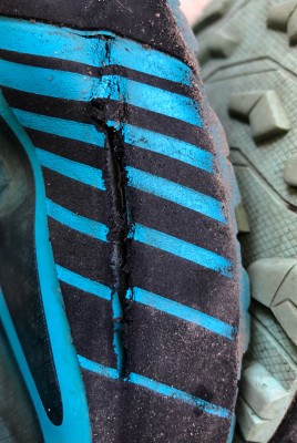 Leider gingen bei uns 2 Paar Schuhe schon nach kurzer Zeit (weniger als 1 Jahr und wenig in Gebrauch) kaputt. Siehe Bilder. Gummirand zwischen Sohle und Oberschuhe riss ein, ohne Steinkontakte, sondern ein Ermüdungsbruch des Materials.
