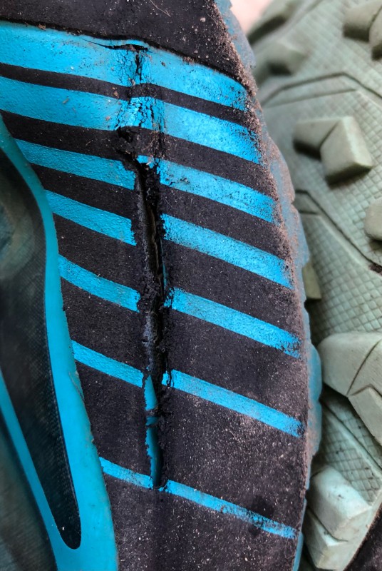 Tolle Haftung, aber dafür läuft sich die Sohle auch recht schnell ab. Ansonsten sehr bequem, ggf. etwas viel Platz /Volumen um den Vorfuss herum. Schnürsystem etwas zu lang.