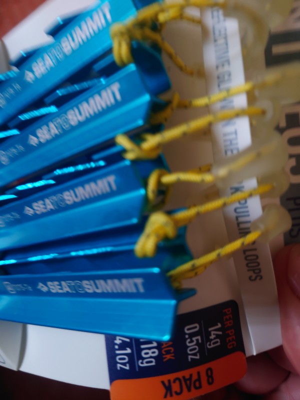 Meine älteren Aluheringe haben eine 'Nase' oben, an der mit den Schuhen auch Mal der Hering einfach in einen weicheren Boden gedrückt werden kann - das geht hier nicht und auch Barfuß sollte man nicht aus Versehen drauftreten, autsch!