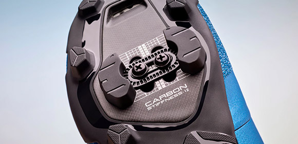Strapazierfähige, steife Außensohle: Sie sorgt für außergewöhnliche Kraftübertragung und Pedalierstabilität, auch bei Marathon-Einsätzen. Effizient, aber nie zu steif.