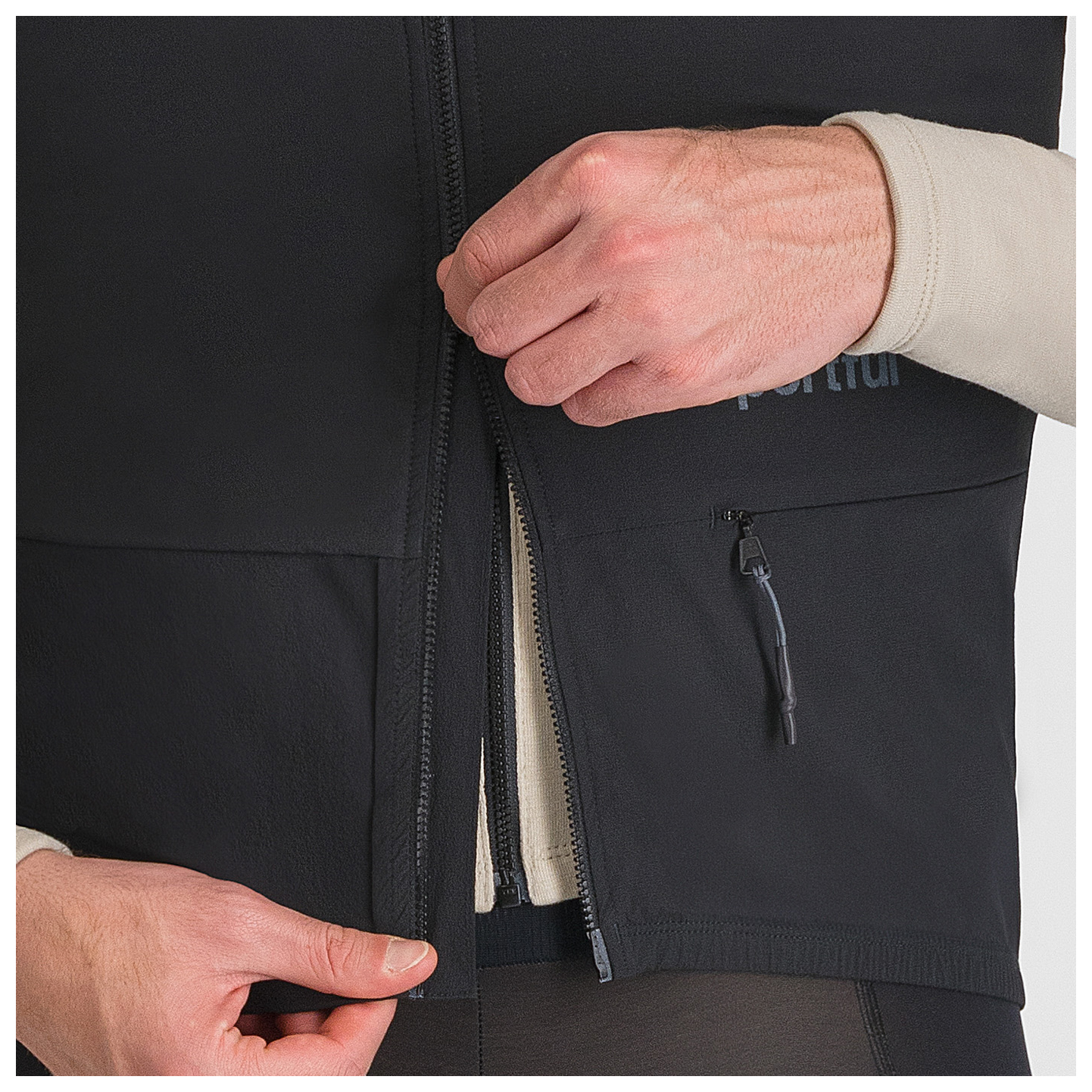 - atmungsaktiv, stark wasserabweisend, stretchy, winddicht