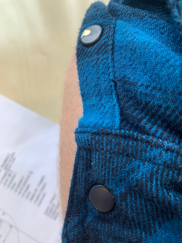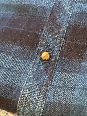Das größte Manko ist jedoch dass sich bei den schwarzen Druckknöpfen die schwarze Farbe/Beschichtung schon nach kurzer Zeit stellenweise löst. Darunter sind die knöpfe messingfarben. Das ist ein Unding finde ich denn die teilweise abgelöste farbe lässt das Hemd verbraucht und abgetragen aussehen. Designtechnisch ein echter fail denn unbeschichtete knöpfe hätten es ja auch getan. So aber ist das Ergebnis nach zwei mal waschen ein Hemd das man eigentlich gar nicht mehr anziehen will.